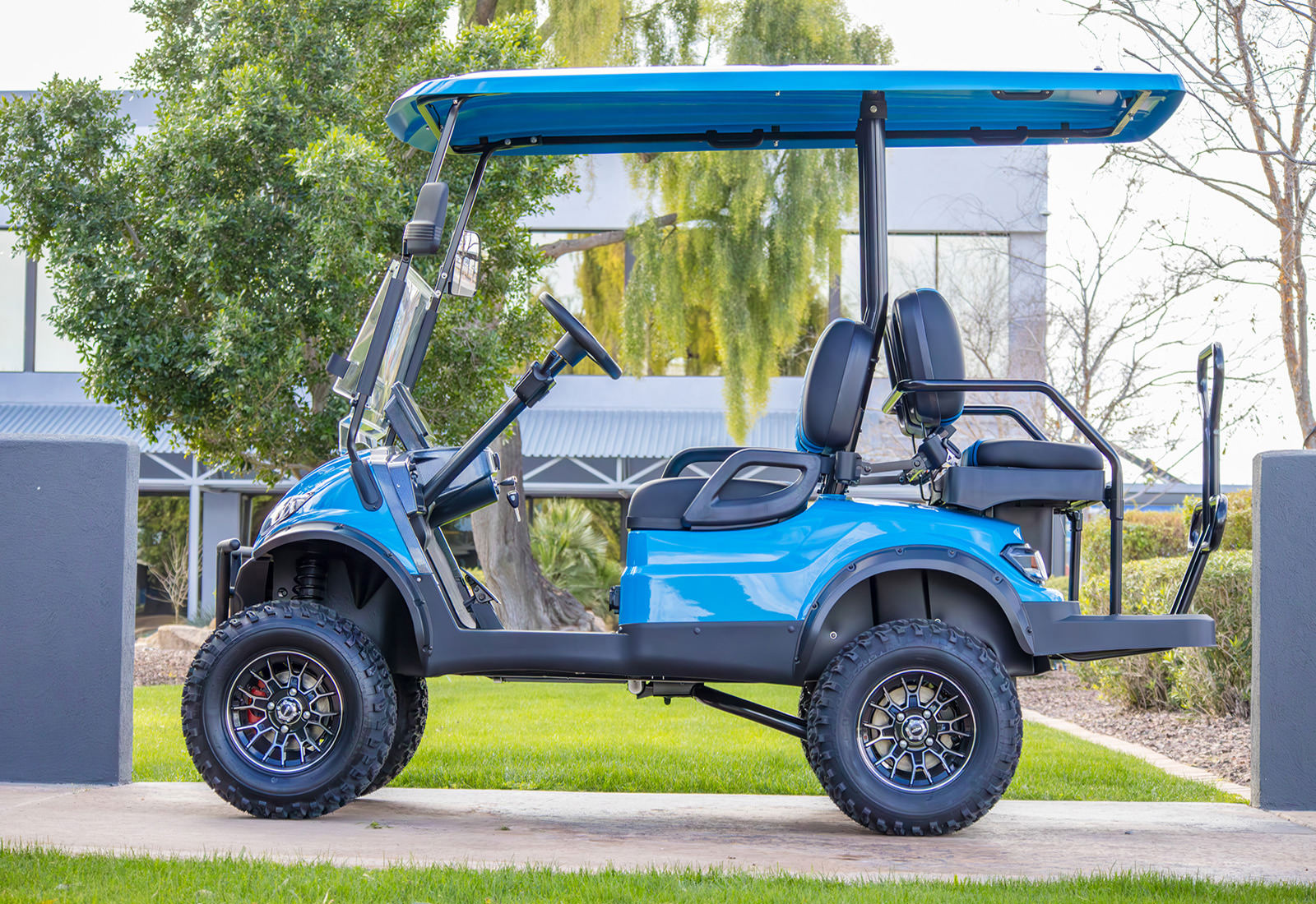The ICON i40L four-seater, lifted golf cart stands out as a versatile, durable and stylish choice. Designed with a lifted configuration, the ICON i40L not only enhances aesthetics but also provides increased ground clearance, allowing it to tackle diverse terrains with robust ease. With its blend of good looks and premium performance, it proves to be an all-around winner for any environment where comfort, reliability, and functionality are paramount.